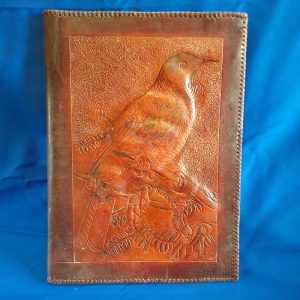 Tooled Leather folder -for stationery, document or writing. Embossed bird on the cover