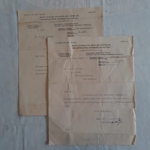 SAR and H Ephemera – 2 typed letters Nov 1940 re free train travel pass