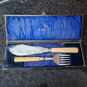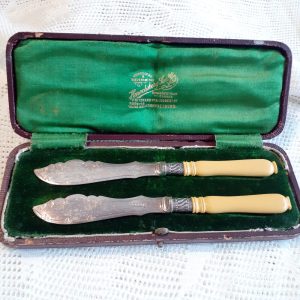 Cake and tart server set – alias Silver collared fish server set – repurpose an old fashioned item!