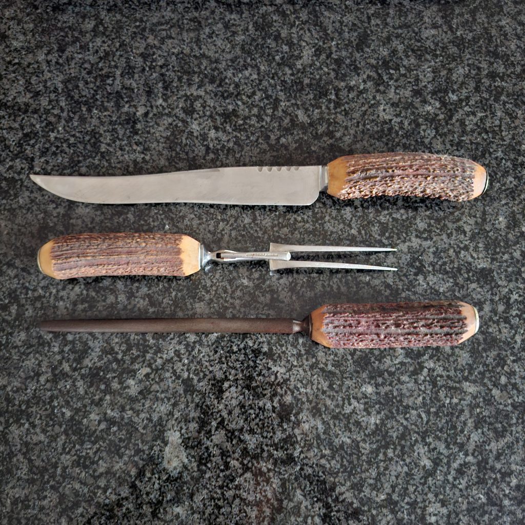 Sheffield Steel Horn handled Carving set – knife carver and steel