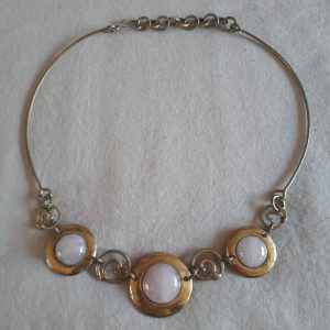 Vintage rose quartz necklace on gilt metal and brass 1970’s