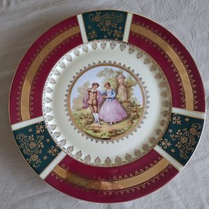 Large Cabinet plate Carlsbad Fragonard Love Story Romantic scene – 28cms dia burgandy and green