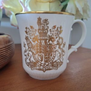 Royal Doulton QE2 Silver Jubilee commemoration mug – Superb condition white with gold