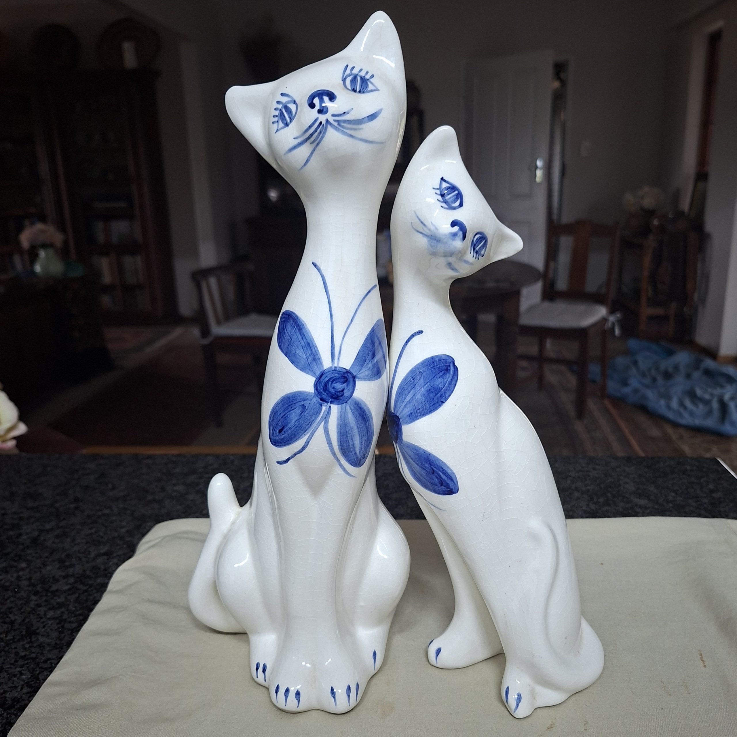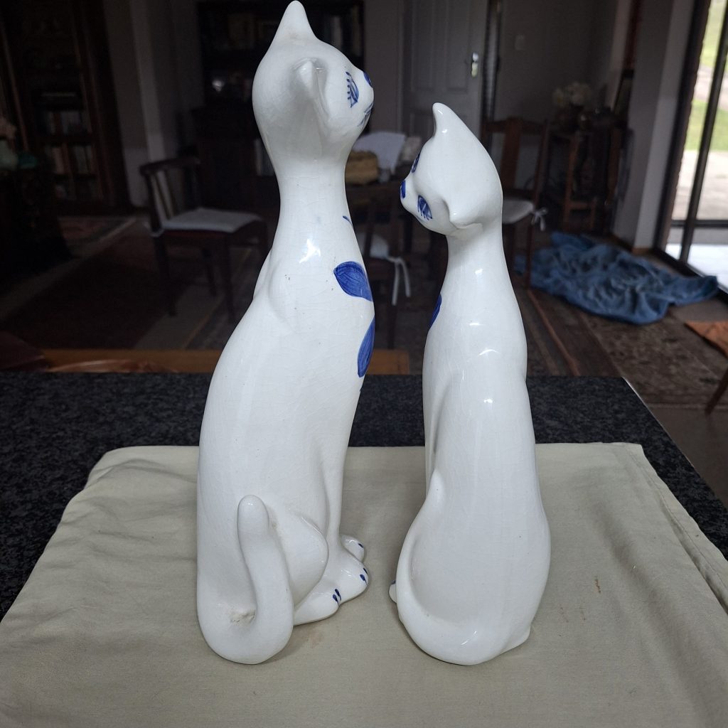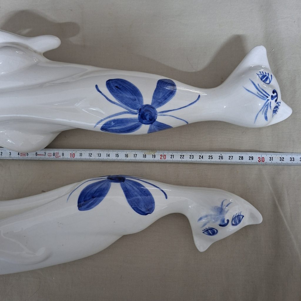 Be the first to review “2 Cat figurines – blue and white – hand painted – 33 cms tall”
