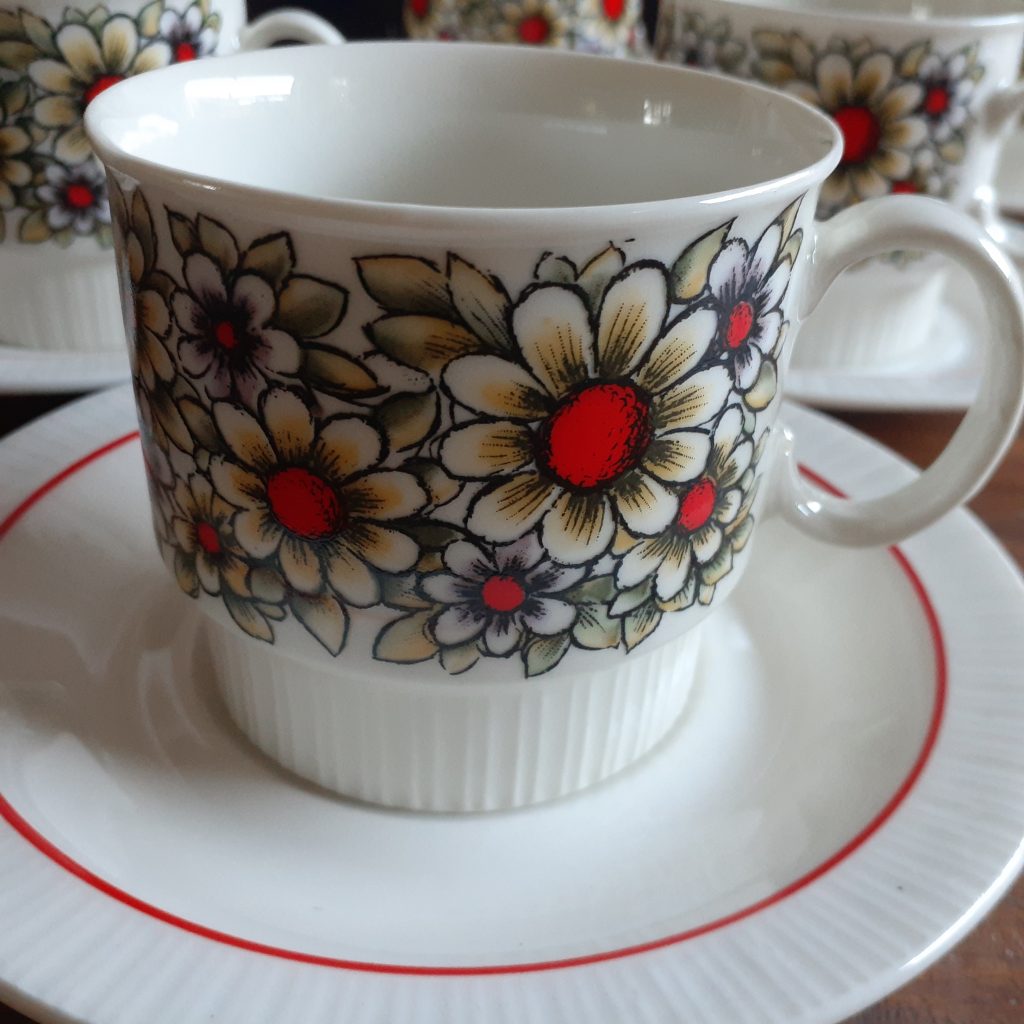 6 cups and saucers from late 60’s with SABS mark. SA Continental China. These are standard cups. In good used vintage condition. Please look at pictures carefully and don’t hesitate to ask any questions.