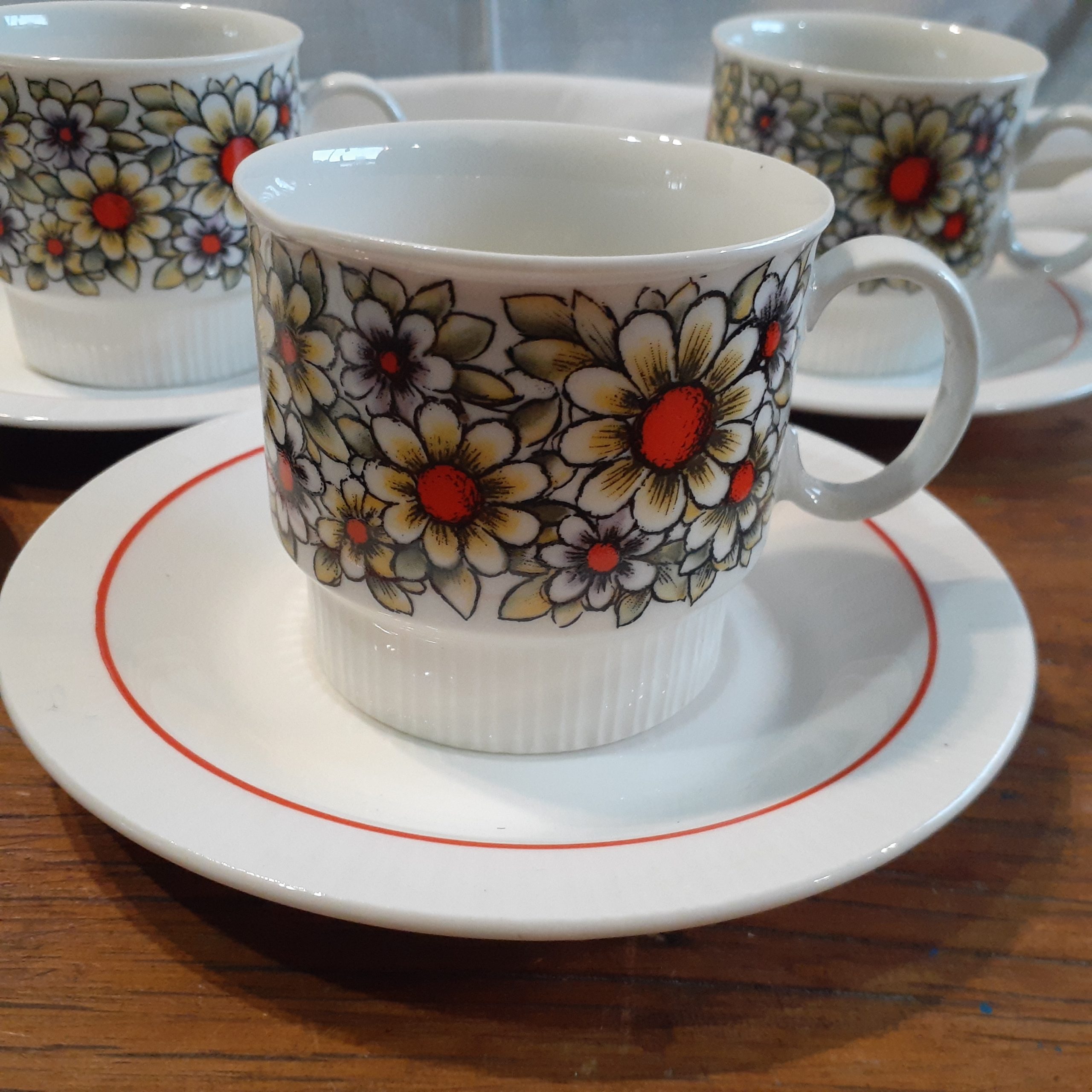 6 duo Tea set – vintage south african Continental china Orange and Cream Daisy pattern