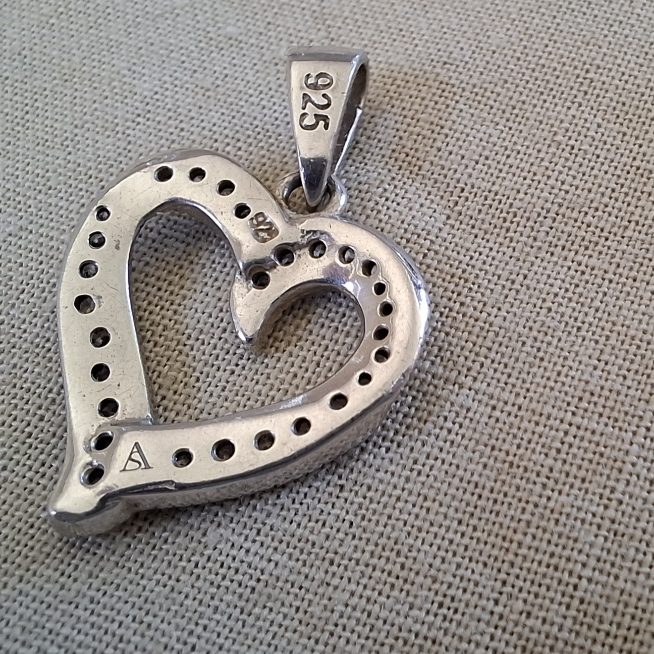 925 silver Italian? heart shaped pendant with diamante – Makers stamp