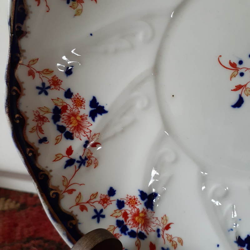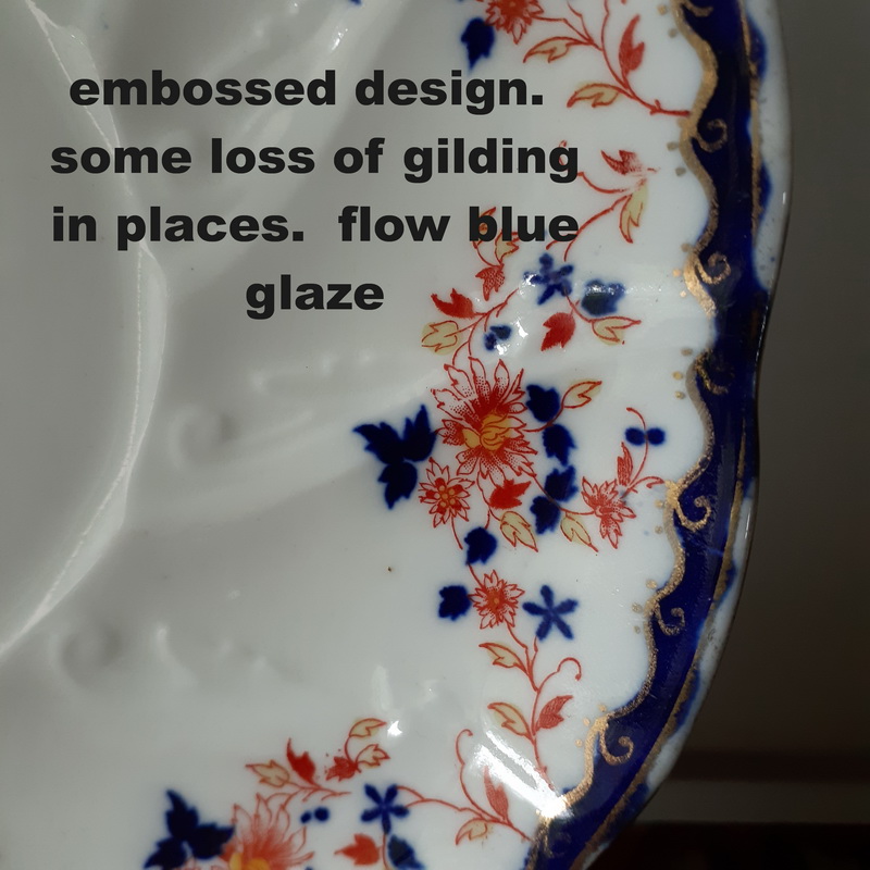 Two antique circa 1912 T Morris Regent China plates. No chips or cracks noted. Soms of guilding on the edges otherwise in lovely condition. No crazing to the glaze. Flow blue and transfer decoration with embossed pattern. Each plate is 22.5 cms dia. Don’t hesitate to ask any questions.