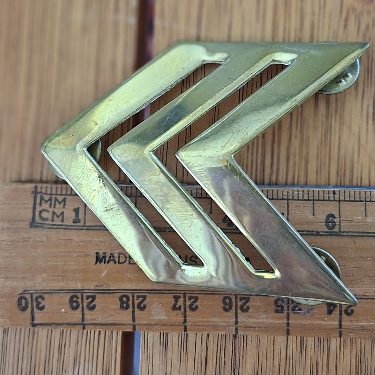 Army? Sargents brass chevron arm badge and 2 pips