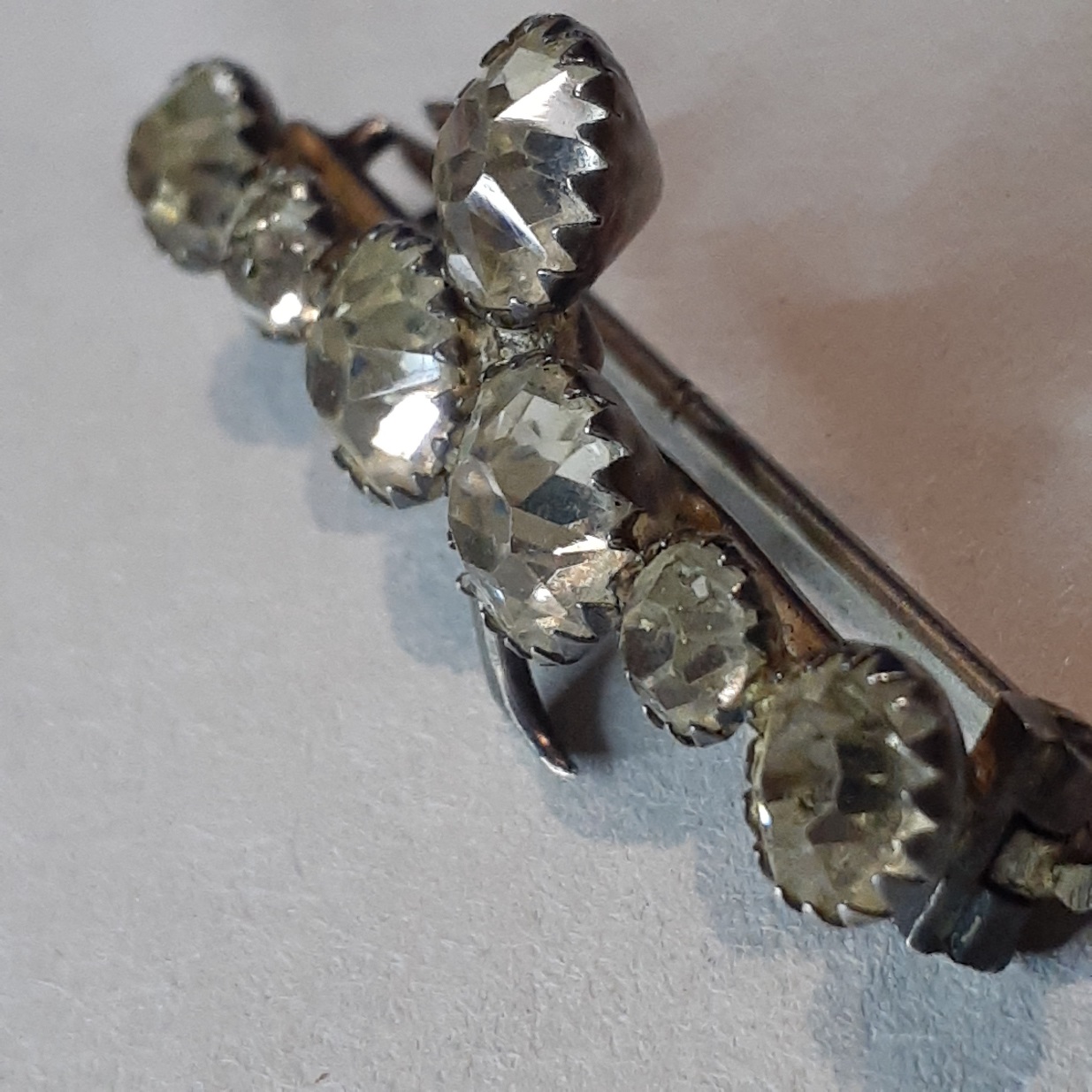 An antique G Loveridge and Co Birmingham silver and diamante brooch.  Please note the clasp is a little out of shape.  Dont hesitate to ask any questions.