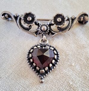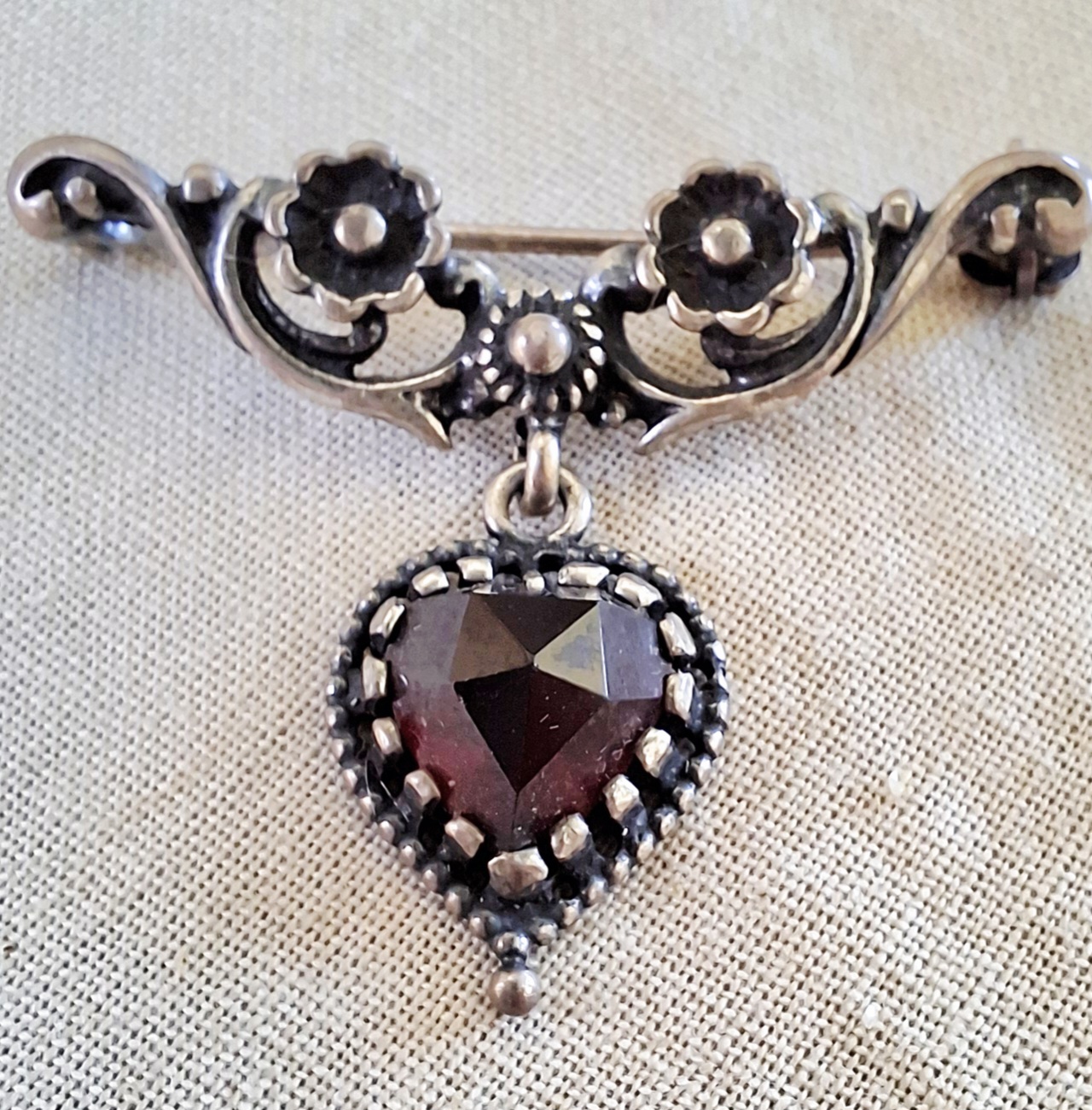 Sold Bobshop April 2026 German silver and garnet? heart brooch 925 and 935 silver