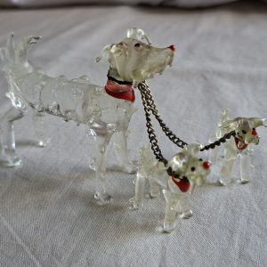 Be the first to review “Glass dog and 2 pups red collars and noses. Vintage scruffy dog” Cancel reply