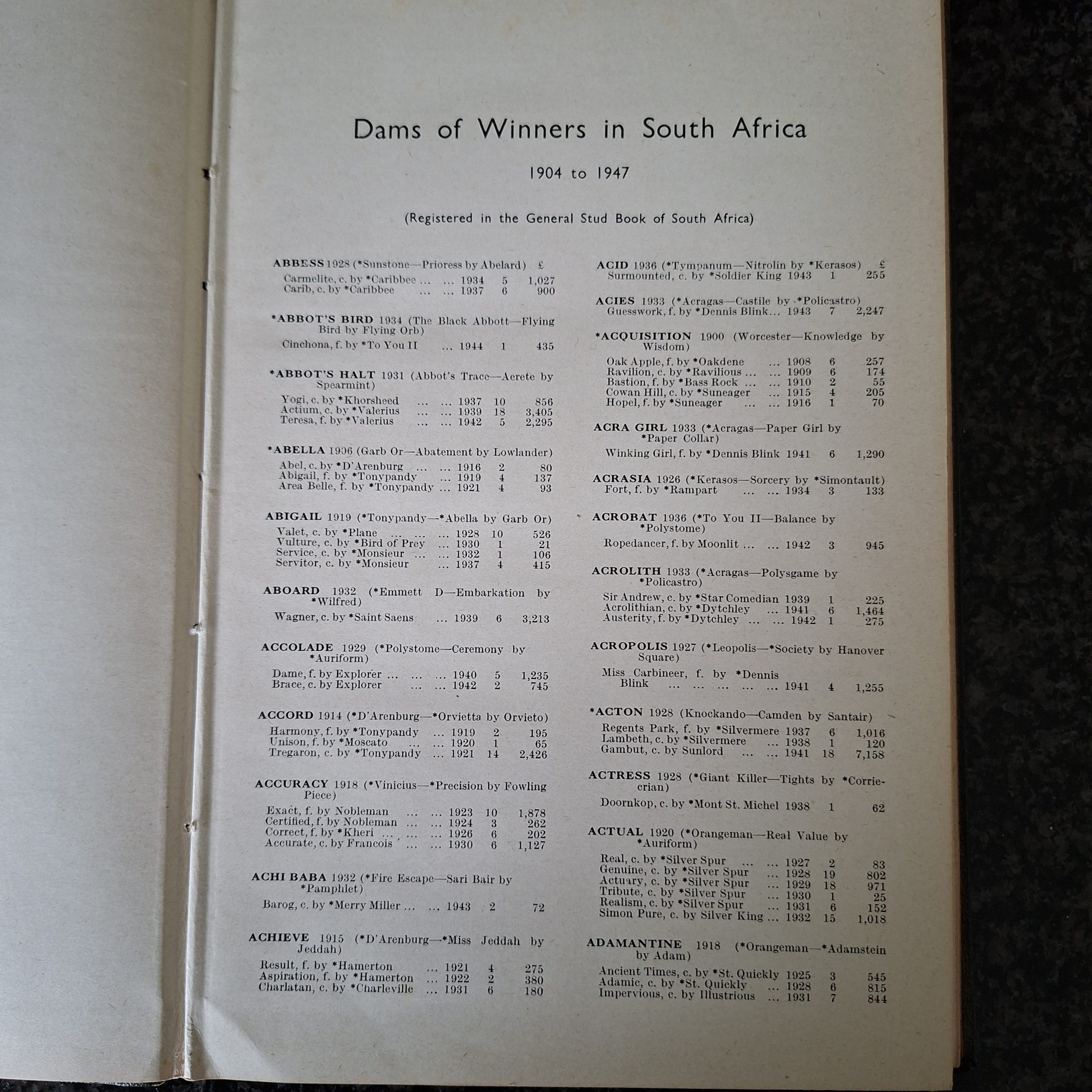 Horse racing – Dams of Winners, Jockey club SA 1904 to 1947 – 100 greatest racehorses, Julian Wilson – hardcovers