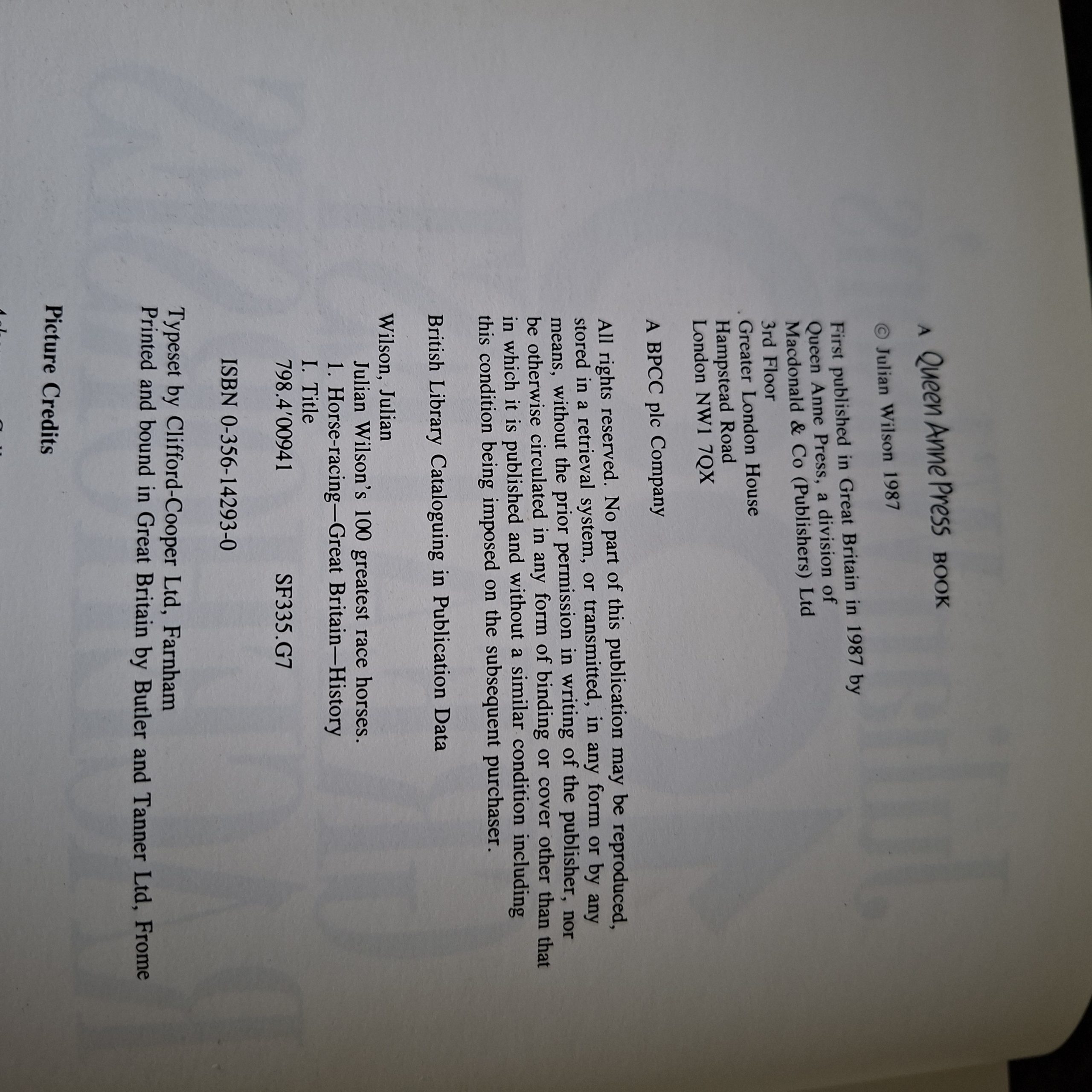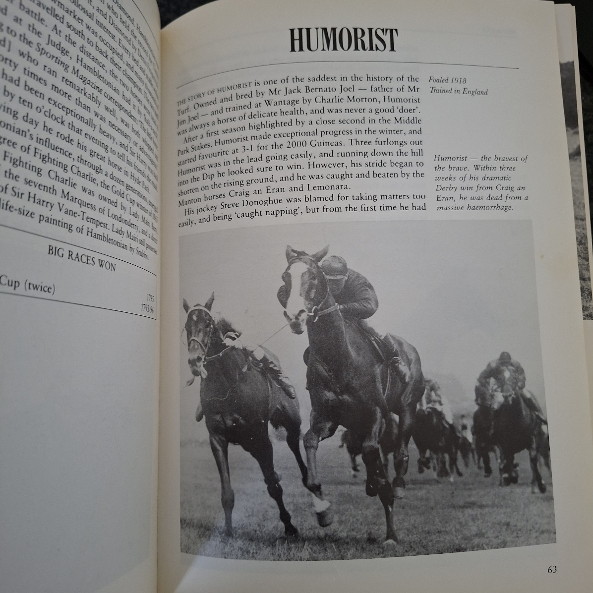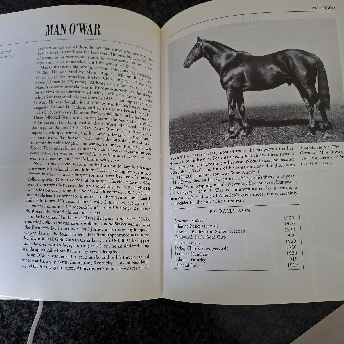 Two hardcover books on horse racing. Dams of winners 1904 to 1947 and 100 reatest Racehorses. No dust covers. Fantastic reads and great for people involved in thoroughbred breeding racing and thoroughbred show horses. Good used condition as per the photographs which form part of my description.