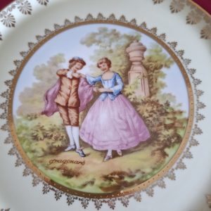 Large west bohemian decorative plate.  Fragonard image Romantic Love Story in Burgandy and Green.  In good vintage condition.   28 cms.  No chips or cracks noted.  Gilding good vintage cond.   Dont hesitate to ask any questions.