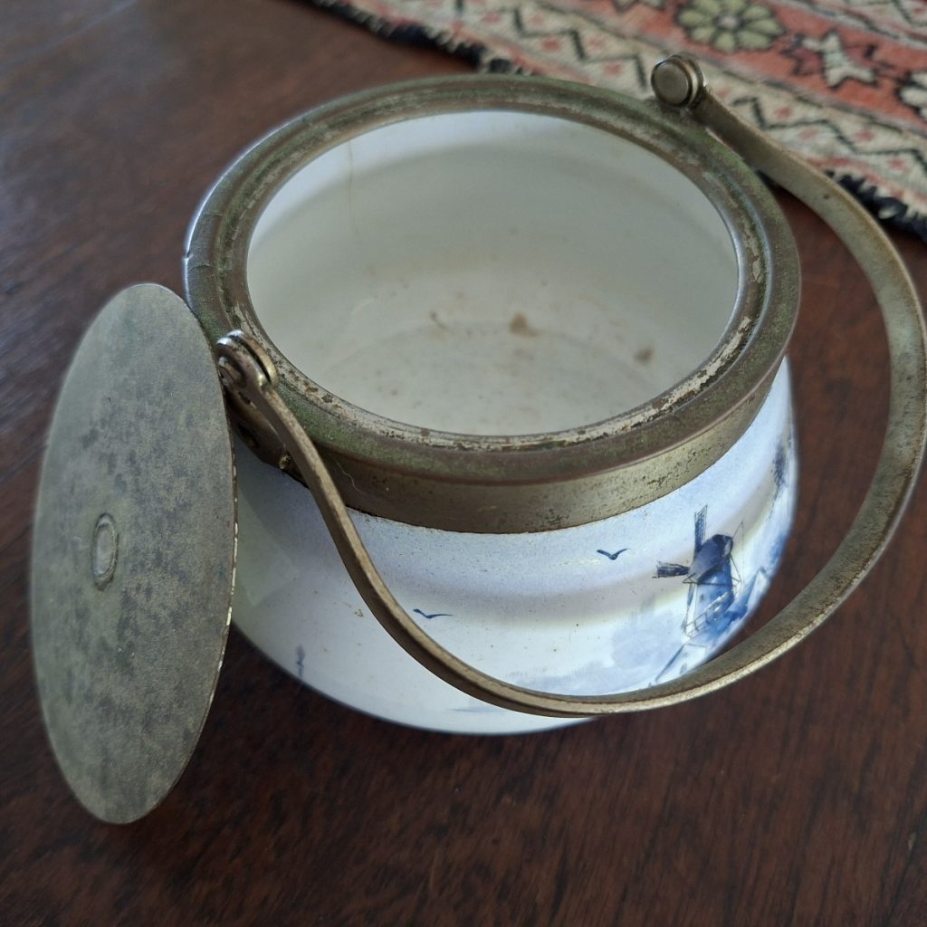 Be the first to review “Lidded jar with Delft style hand painted windmill – vintage” Cancel reply