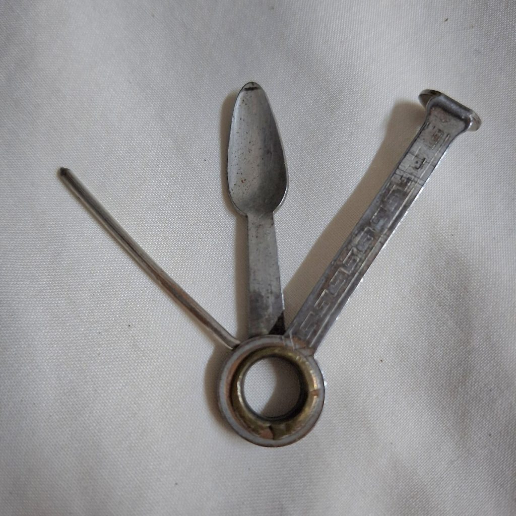Metal tool made in england for cleaning pipes.    This is a well used vintage item.  Please look at the pictures carefully and dont hesitate to ask any questions.