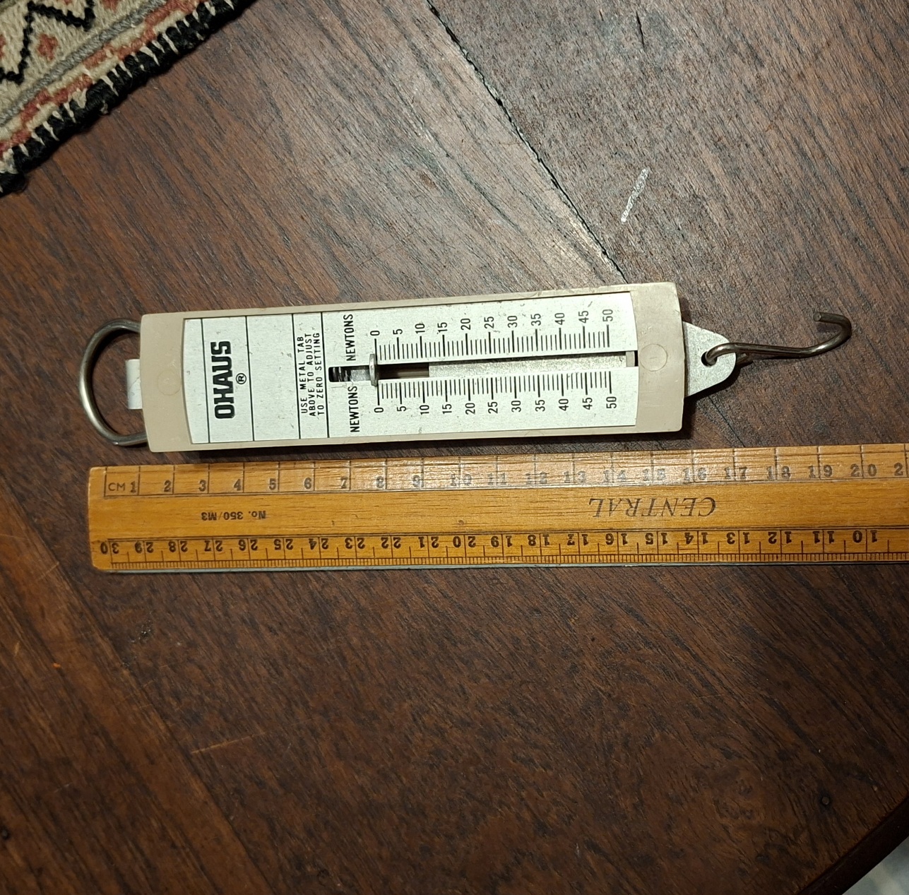 Ohaus spring balance Newtons scale 0 – 50 20cms overall including hooks
