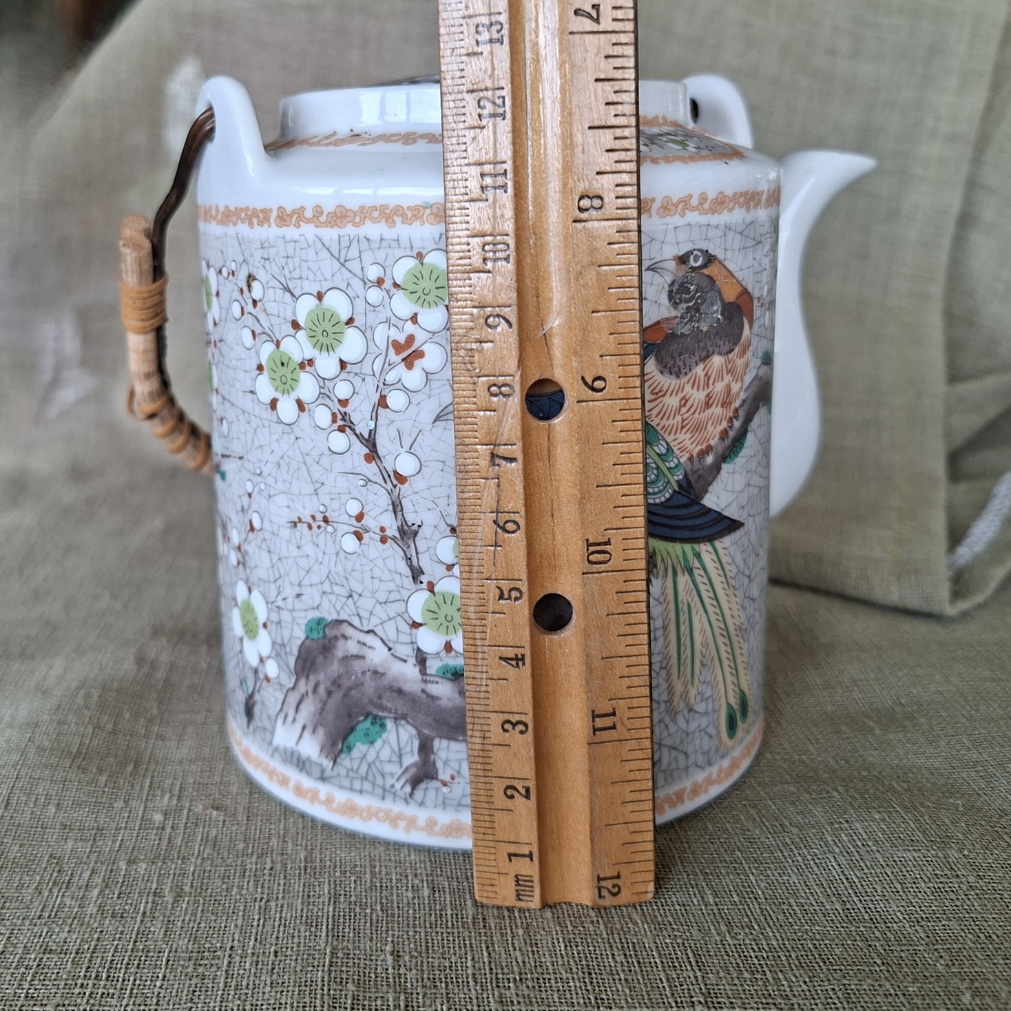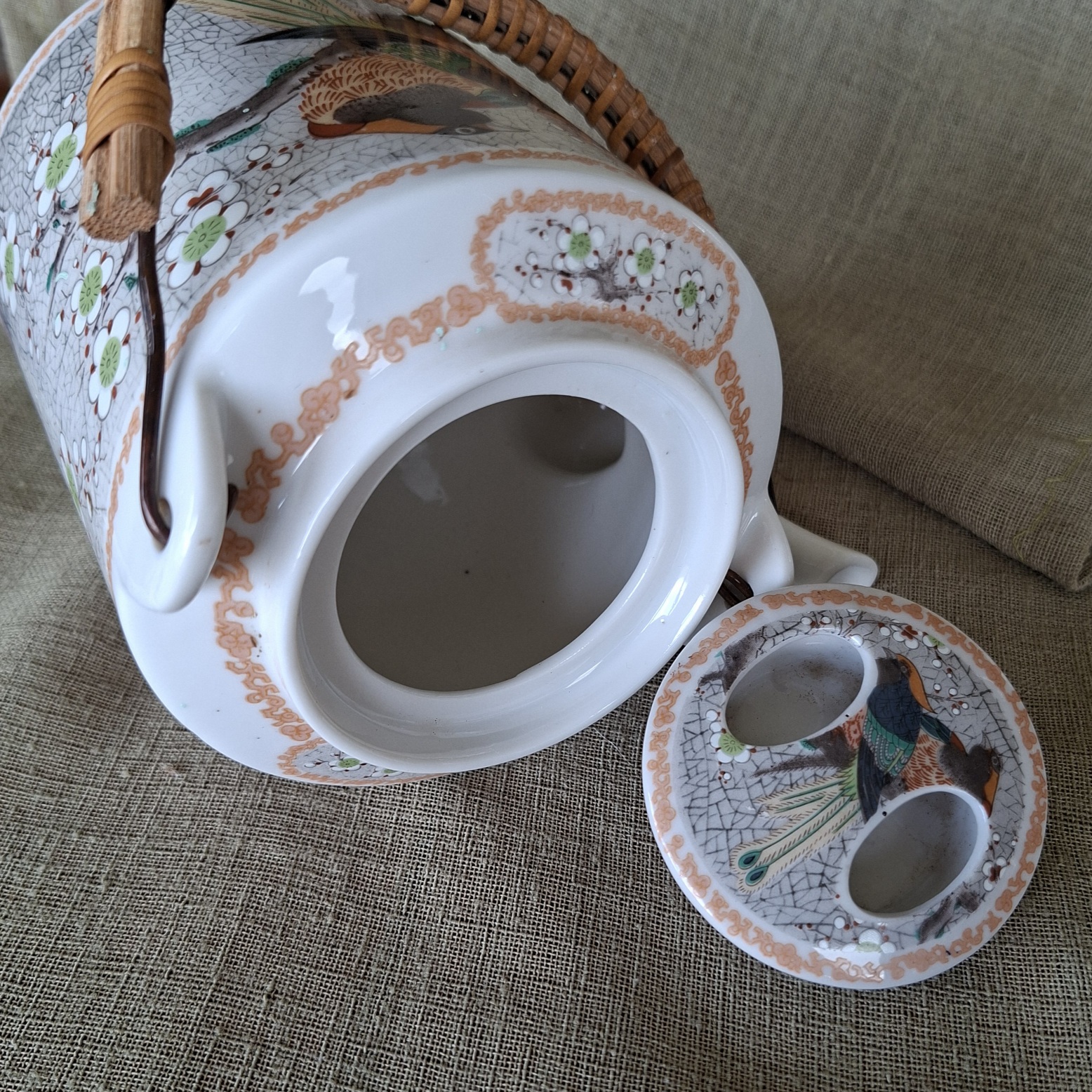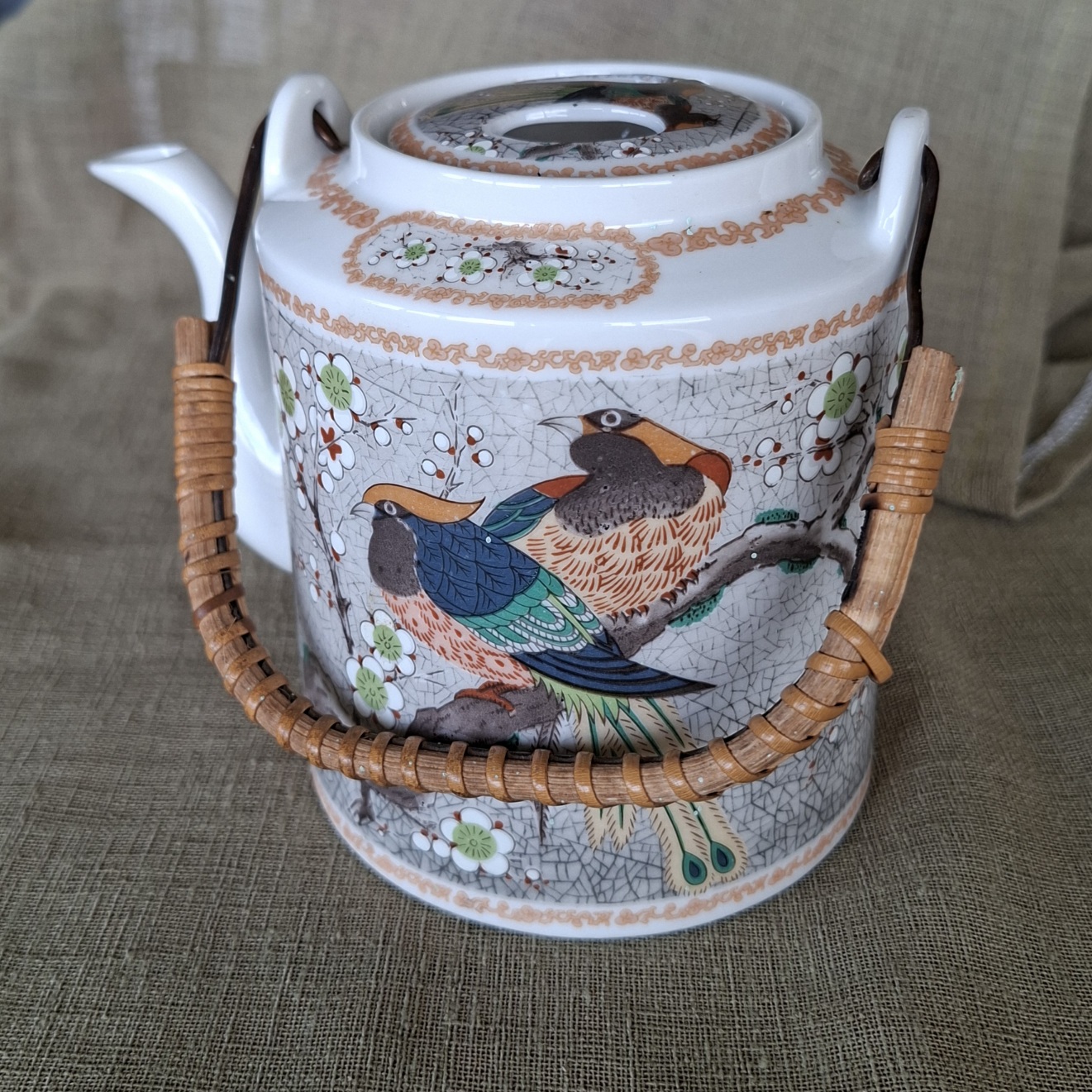 Oriental japanese tea pot and 2 mugs cups – birds and flowers