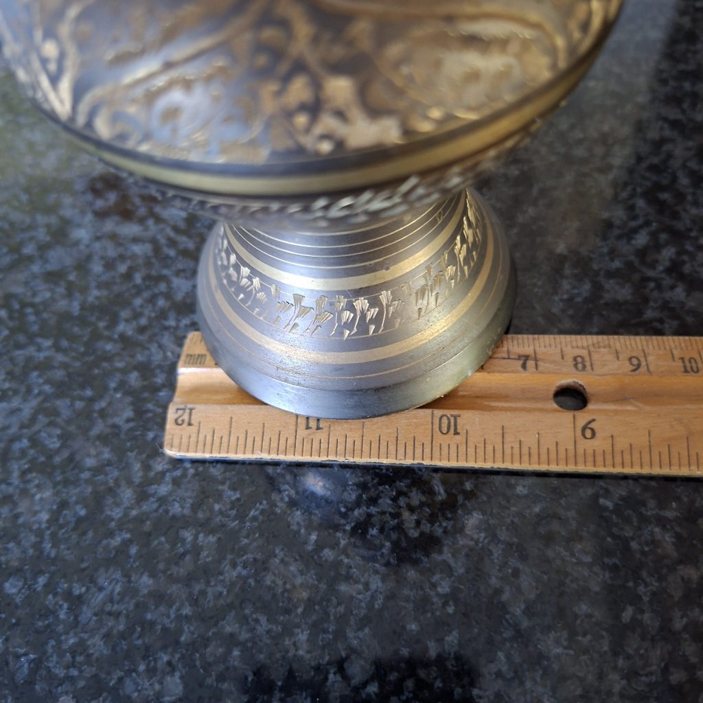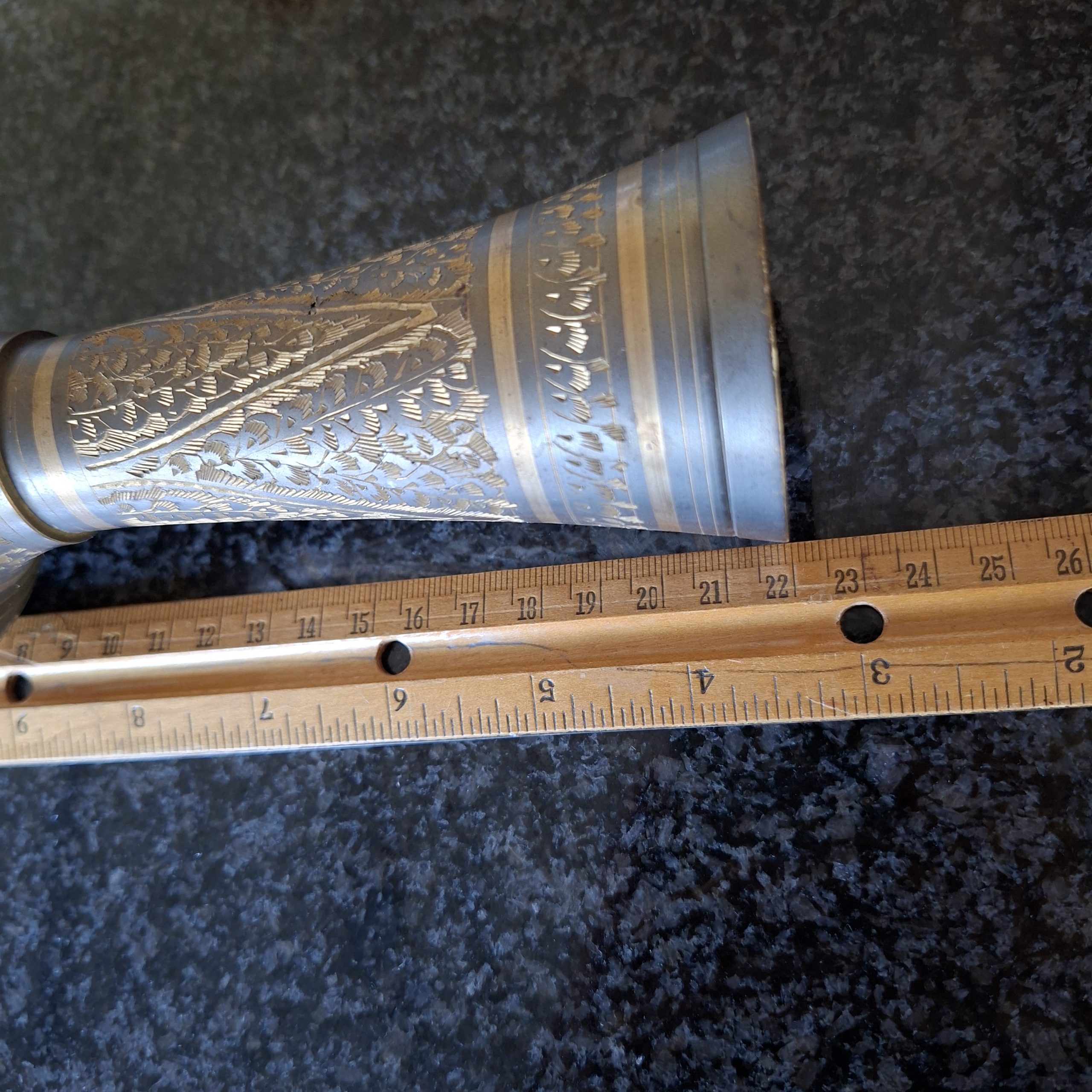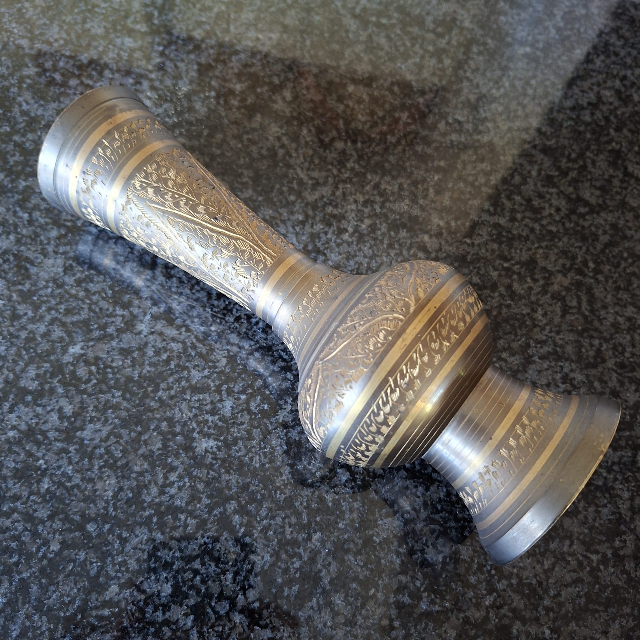 Ornate South Asian etched black brass vase – India – 22 CMs