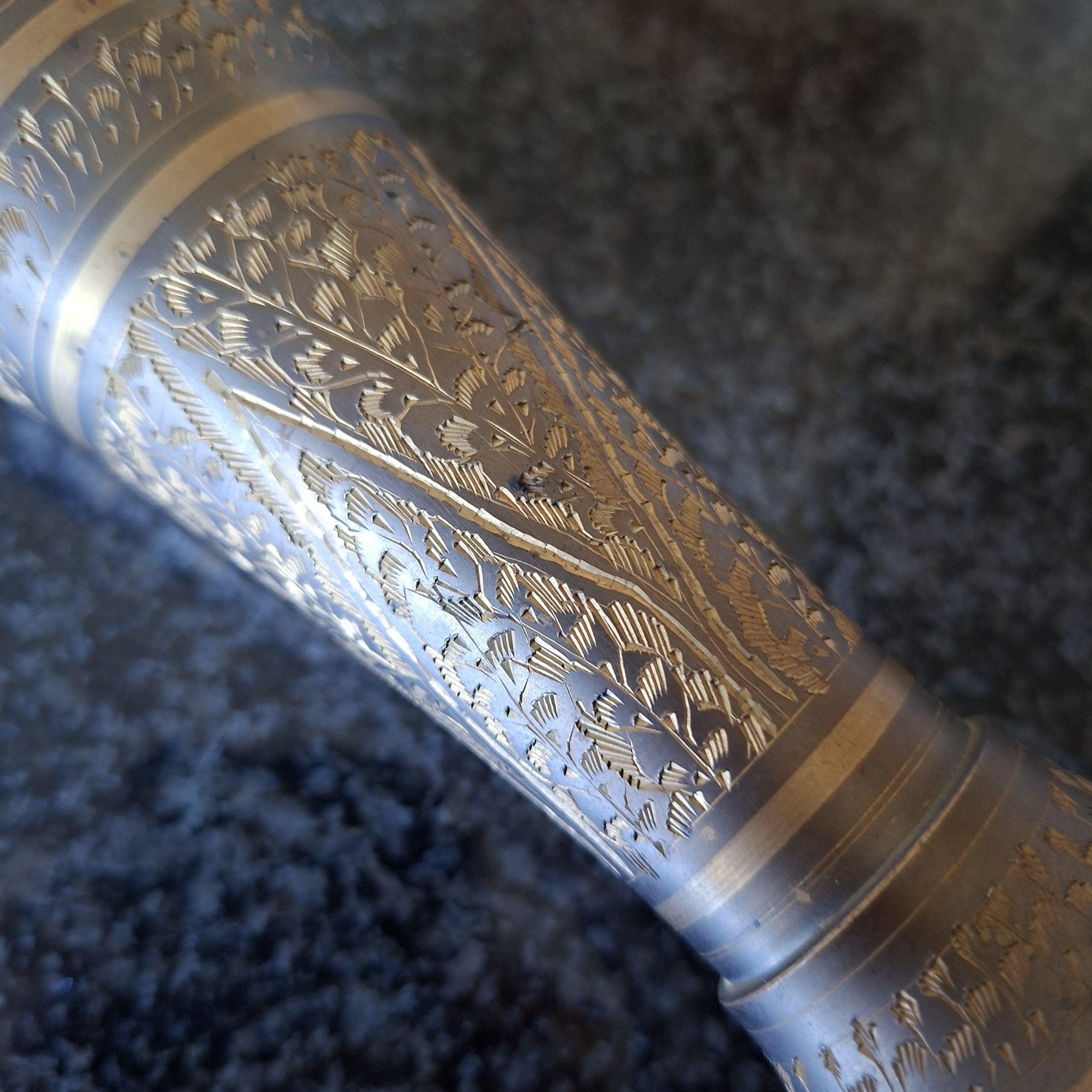 Be the first to review “Ornate South Asian etched black brass vase – India – 22 CMs” Cancel reply