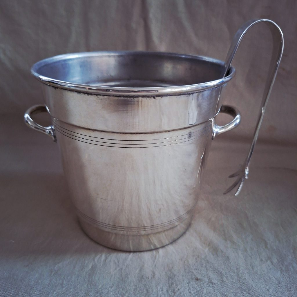 Silver plate ice bucket with tongs. Quality Louis Silver plate with ice water drainer
