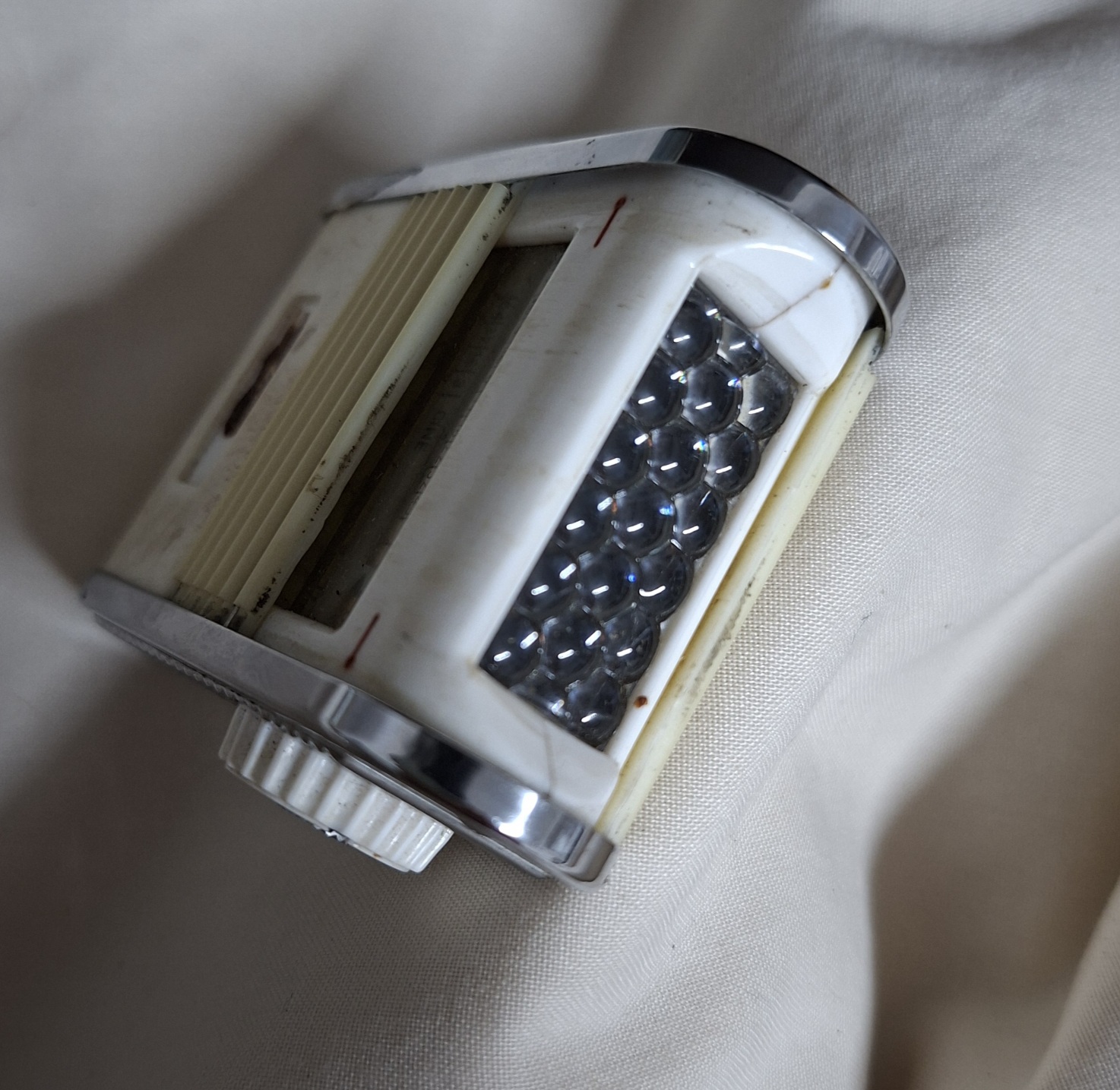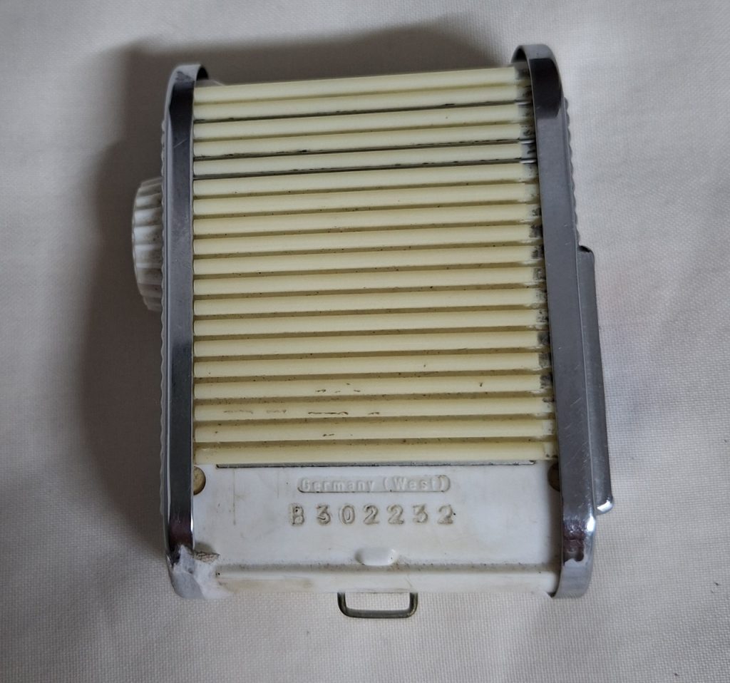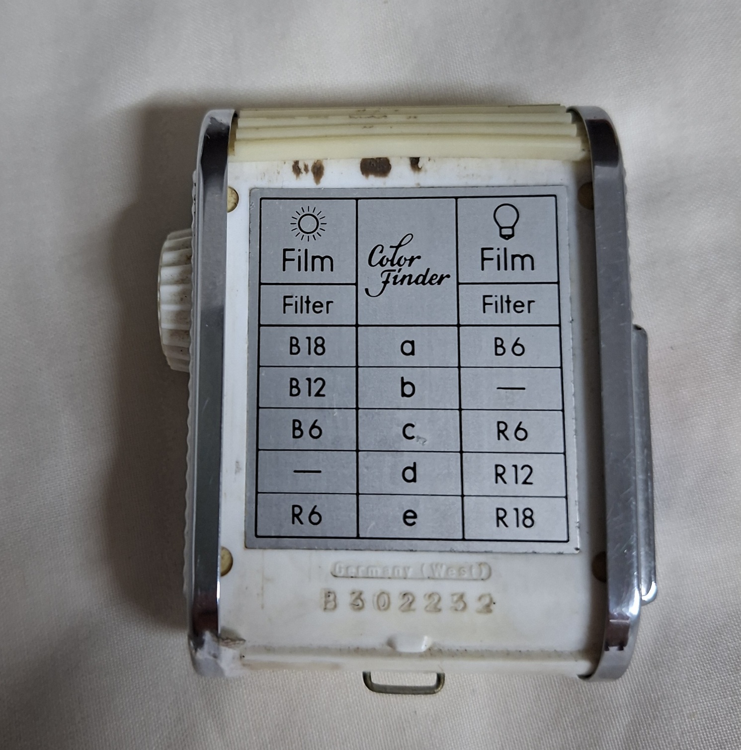This vintage gossen colour finder has been well used.   The light gauge is sensitive to light so tt seems to be intact.  The ribbed slider works in two pieces instead of one. No pouch to put it in.  The pictures will form most of my description.