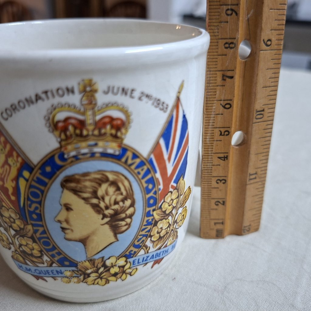 Coronation June 2nd 1953 – Queen Elizabeth 2nd.   Mug is in good vintage condition.  No chips or cracks noted