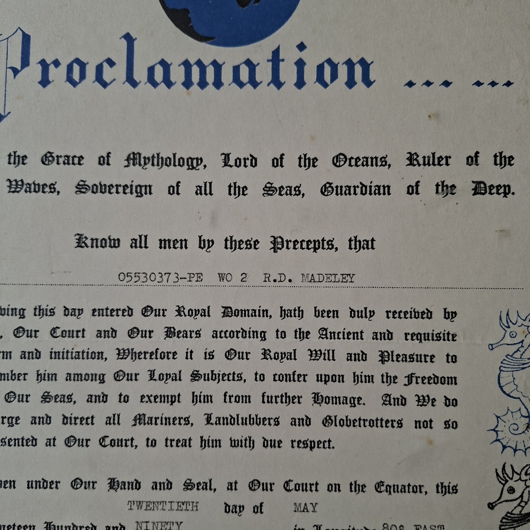 The SAS Drakensberg participated in the traditional naval “line-crossing ceremony” when crossing the Equator, which is a customary initiation rite for sailors. During this ceremony, those crossing for the first time—called “pollywogs”—are initiated and often receive certificates or scrolls recognizing their crossing and new status as “shellbacks.”
