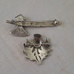Be the first to review “Silver tone Celtic Axe and Thistle brooch” Cancel reply