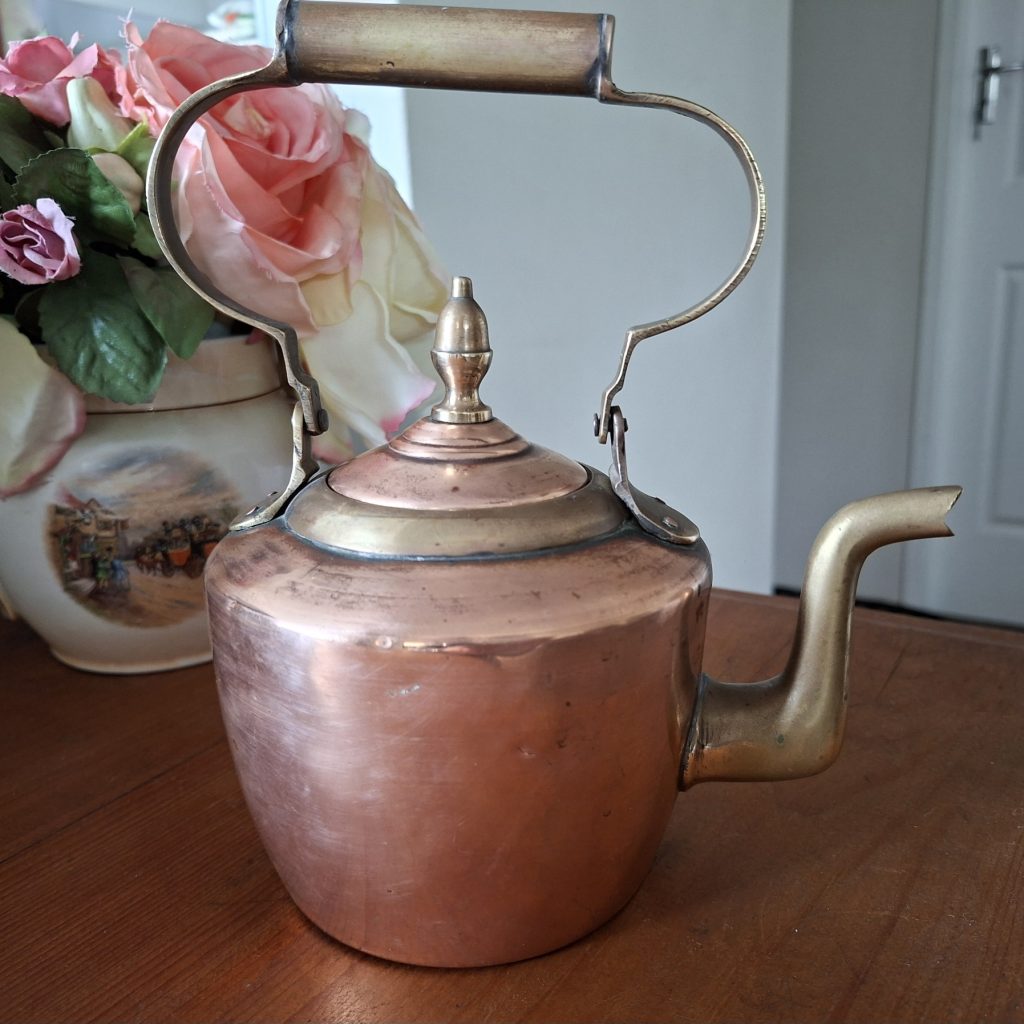 Small copper kettle with brass handle – home decor – kitchenalia