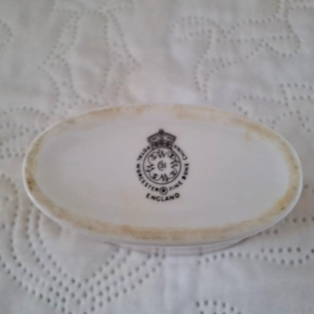 Small Royal Worcester oval toothpick holder vanity item storage – woodland pattern – vintage 7 cms