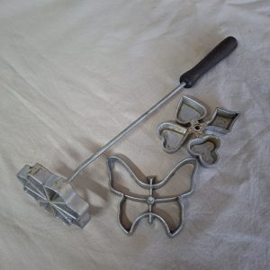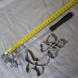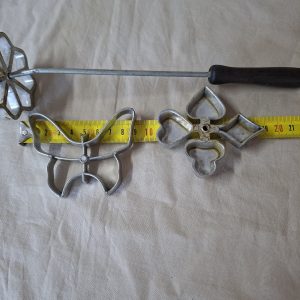Snackle iron with 2 extra irons.   In used vintage condition.  Handle screws into all 3 irons.   Could do with a cleaning – as found.   Please ask any questions.