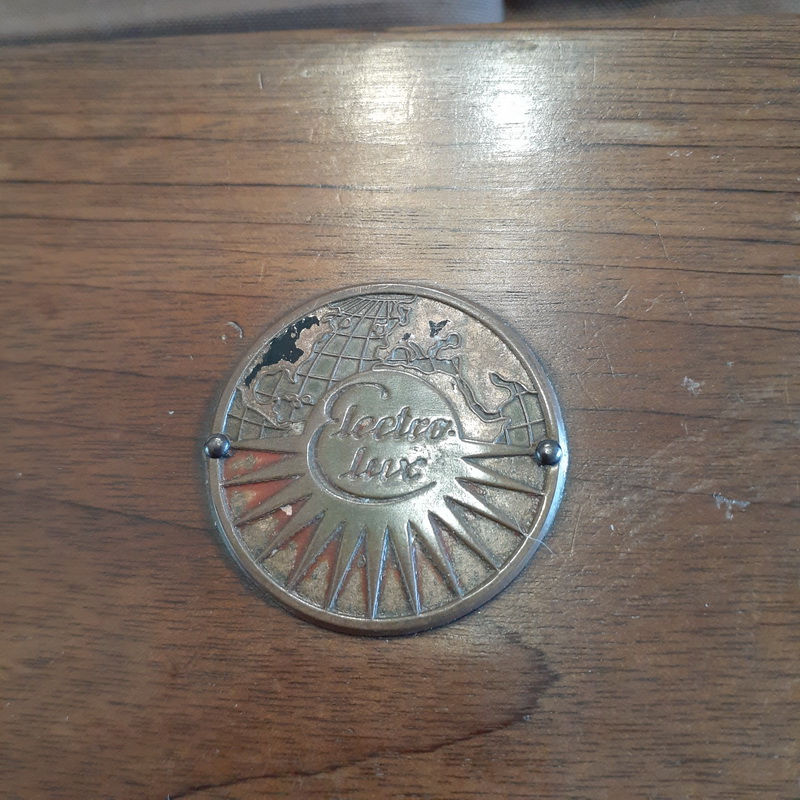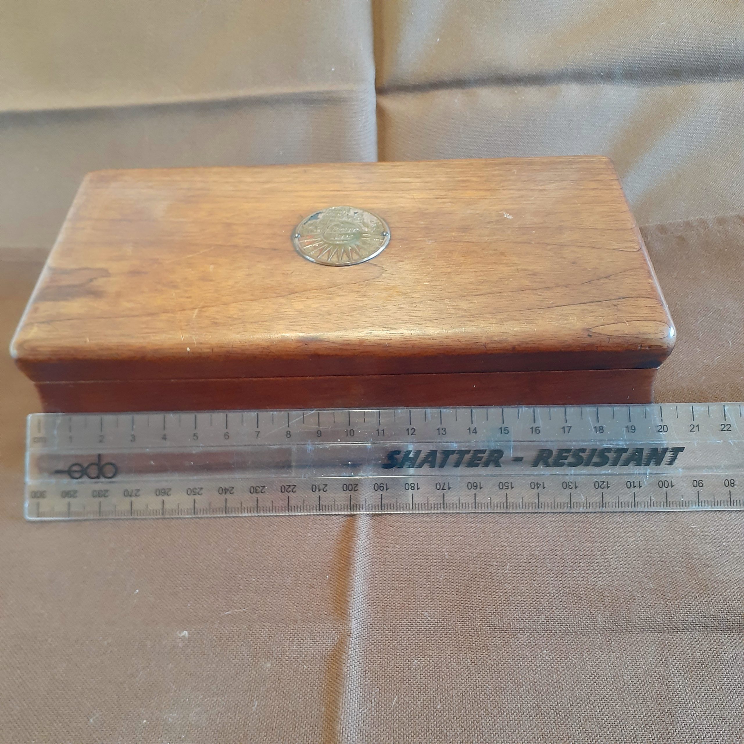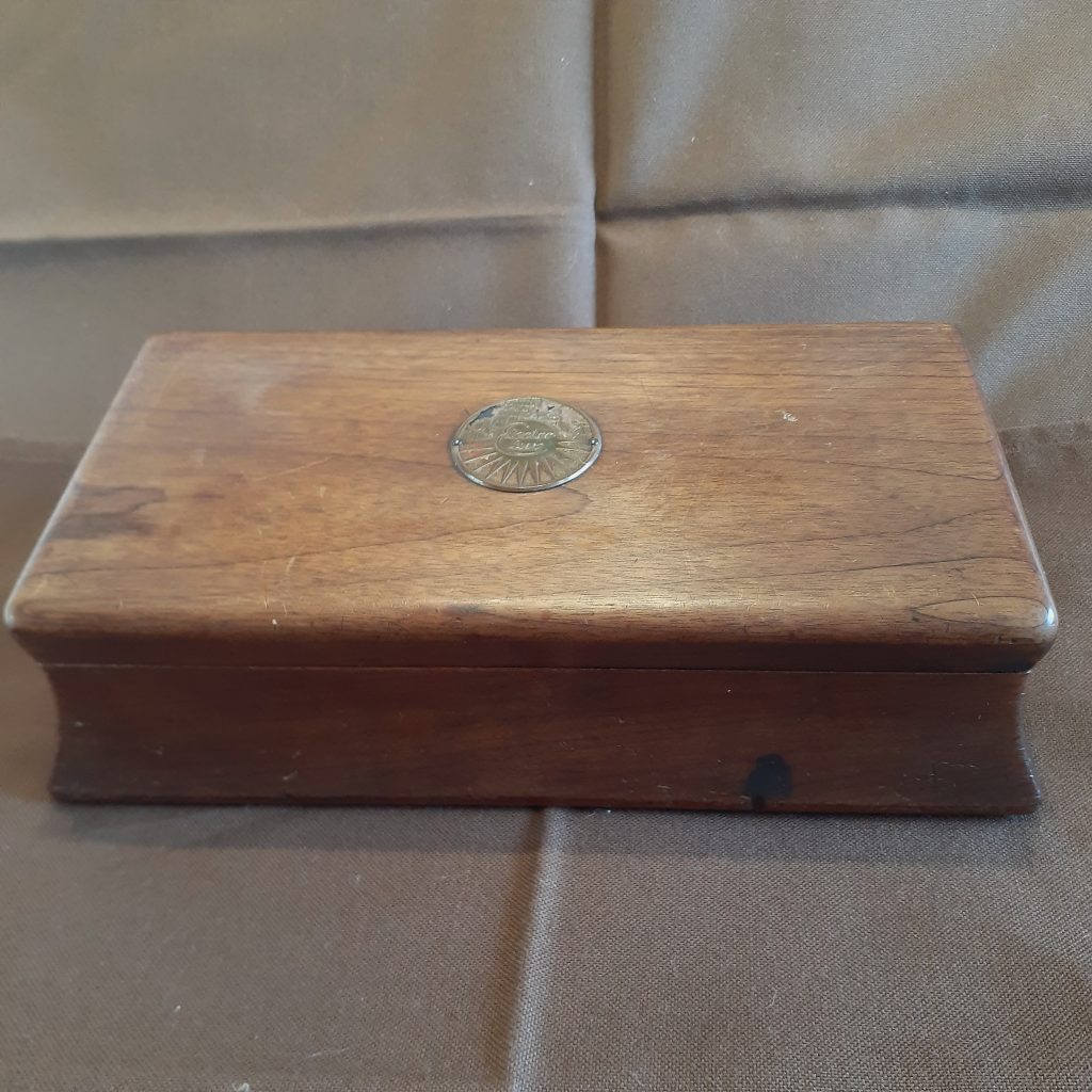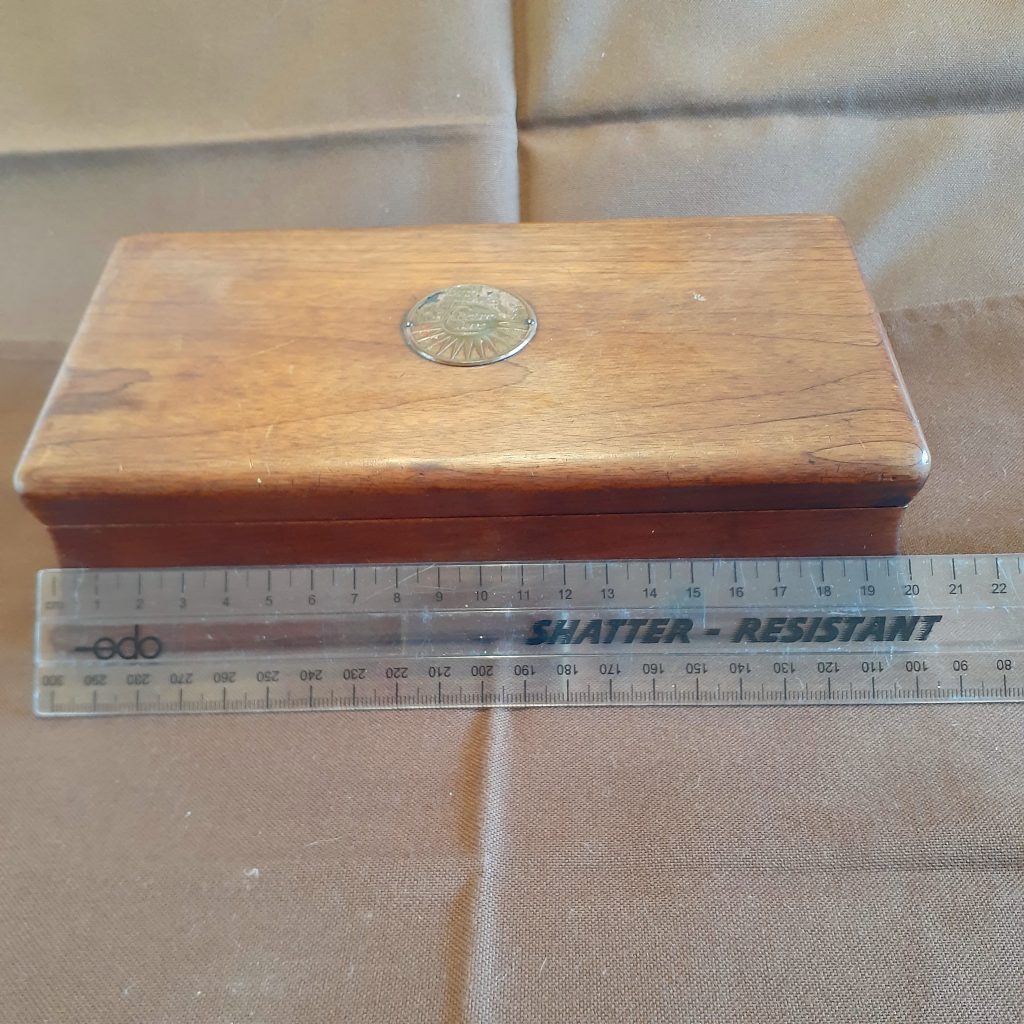 Swedish wooden box with vintage electrolux badge jewelry box card box