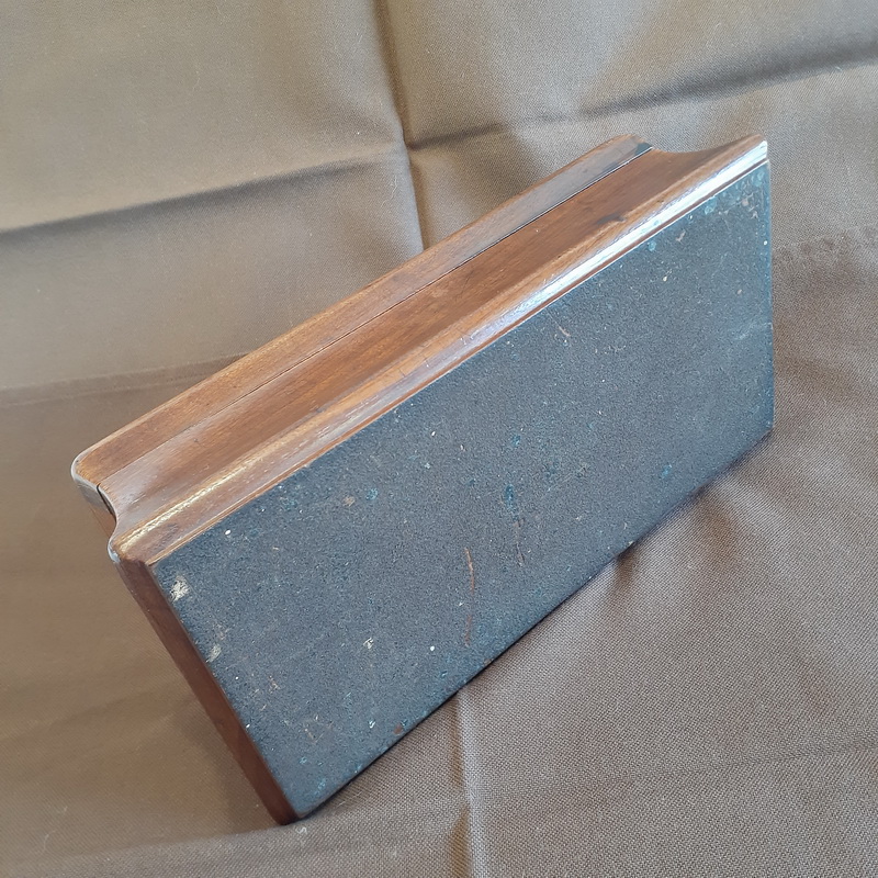 A beautifully made wooden card box in used vintage condition. Please look at the pictures for condition and size. No loose corners or hinges. Some scuffing inside the box. Dont hesitate to ask any questions.
