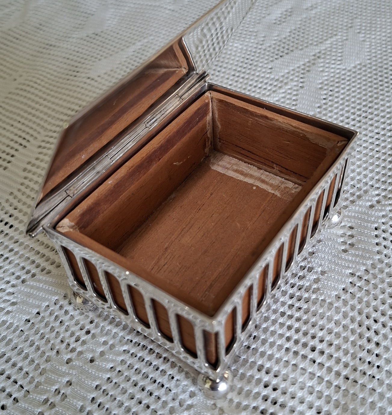 Be the first to review “Table Cigarette Box – EPNS silver plate wooden lining.” Cancel reply