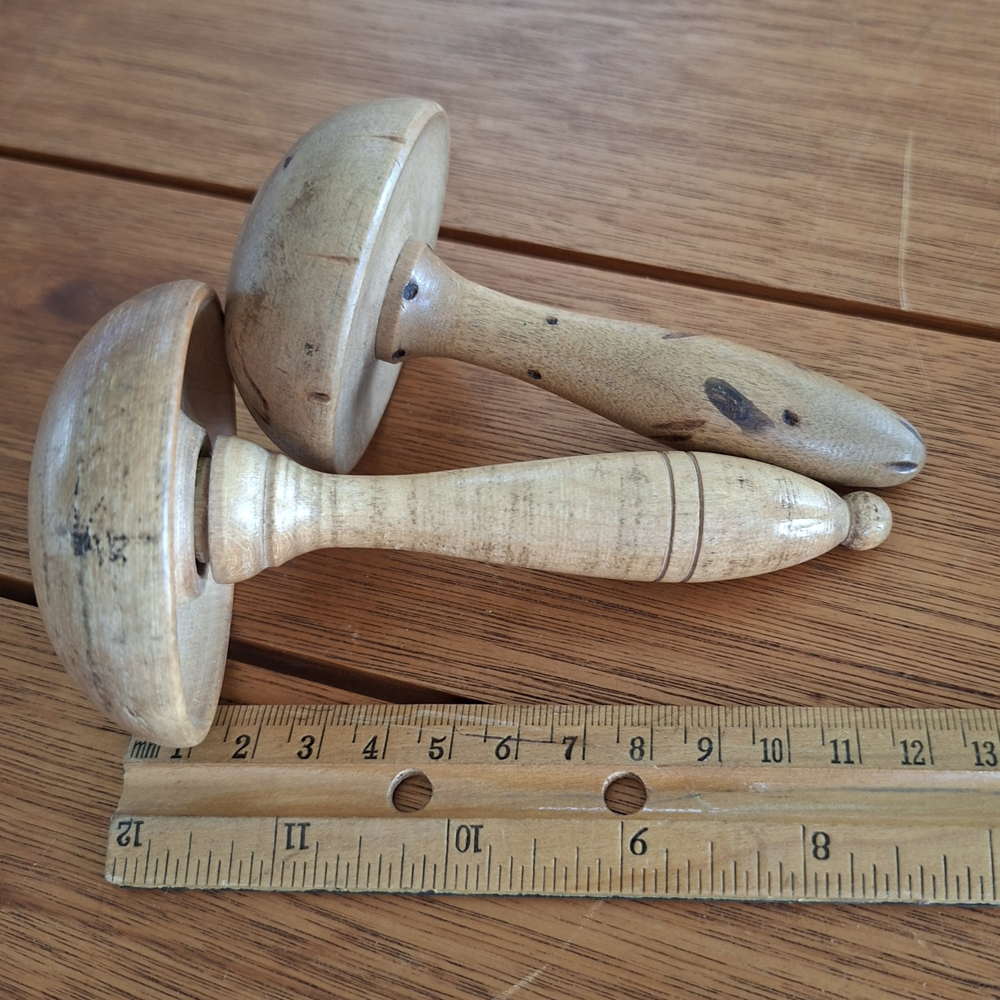Two Wooden darning mushrooms – treen items – sock darning or clothes