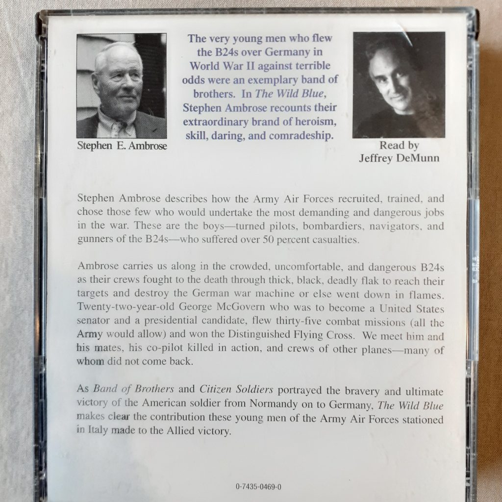 4 audio discs in excellent condtion. The story of the young men who flew the B24 s over Germany in World War 11. A “must listen to” for anyone interested in WW2 history and the bravery and tenacity of young men against terrible odds, and in particular young people who have hardly heard of WW1 or 2. Made in 2001